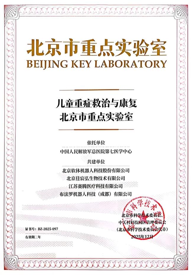 作为北京市科技创新体系的重要组成部分,北京市重点实验室是集聚培养使用优秀创新人才、开展高水平科研活动的重要科技创新基地,旨在着力解决科技难题,促进科技成果转化,培育新的经济增长点。儿童重症救治与康复北京市重点实验室经北京市科学技术委员会于2025年12月正式批准建立,集高水平科研与临床转化于一体。投入运营以后,不仅标志着实验室的建设工作全面展开,也预示着佳宸弘生物与解放军总医院第七医学中心的临床科研合作由此向新阶段迈进。