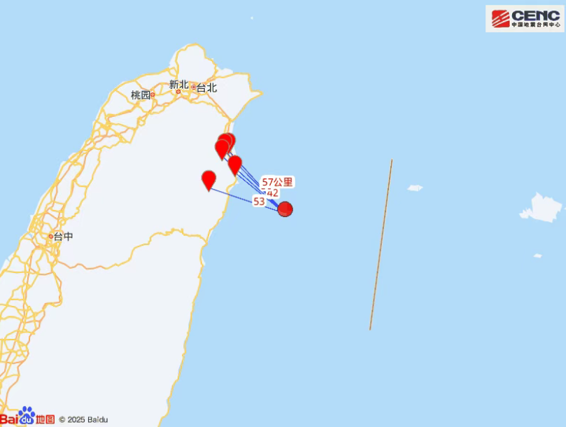 周边县城:震中距苏澳镇42公里、距南澳乡53公里、距五结乡56公里、距冬山乡56公里、距罗东镇57公里,距宜兰县62公里,距台北市101公里。