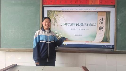 鲁网4月3日讯为缅怀先辈、寄托哀思,厚植家国情怀,近日,济南市莱芜区方下中心中学初四级部举行了清明节经典诗文诵读会活动,全体参与者齐聚一堂,以诗传情、以诵抒怀。