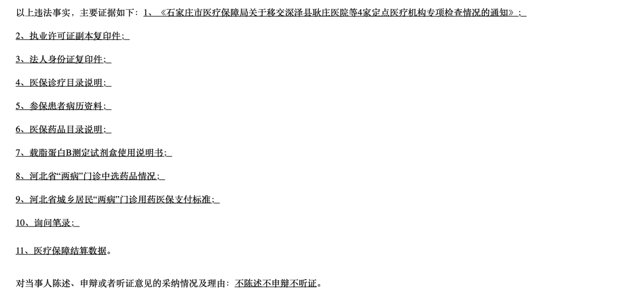据处理决定书显示,深泽县留村乡卫生院在2023年1月1日-2025年6月30日期间,存在违规行为:神经阻滞麻醉超标准收费,红参、银杏叶提取物超限用药,甲胎蛋白测定、血清载脂蛋白测定、总前列腺特异性抗原测定过度检查,两病患者开非两病用药不合理收费等问题。