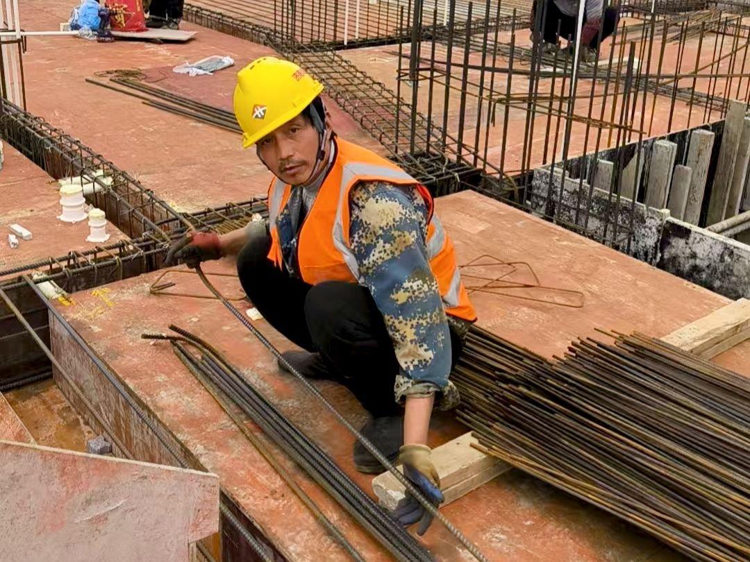 在工地干活的李明勇