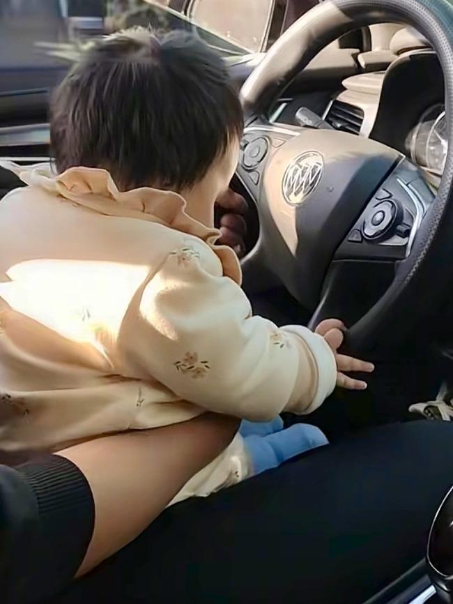 车主怀抱婴儿开车上路