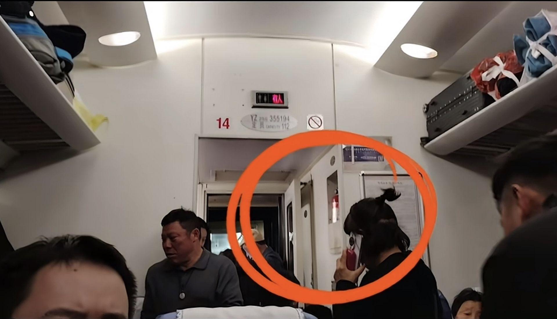 时先生拍摄的找K692次赵车长安排座位的乘客。(时先生所发视频截图)