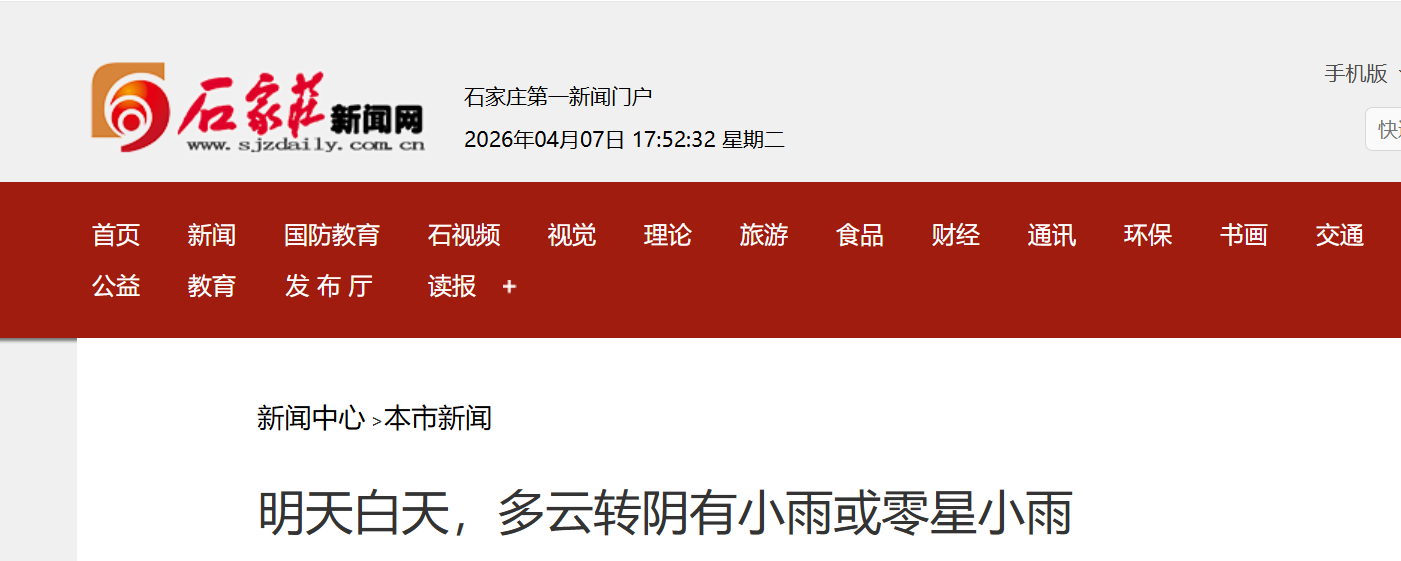 石家庄市气象台4月7日16时发布全市未来24小时天气预报
