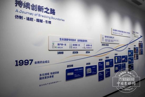 进入金赛药业的展厅,左手边可以清晰看到该企业的历史沿革。窦志国介绍,金赛药业1997年成立,1998年从仿制起步,研制出国产首支生长激素粉剂,填补了国内空白。此后,以生长激素为突破口,不断进行研发突破,逐步建立起针对儿童生长发育特点的专属研发体系,从剂型优化到临床评价,构建起覆盖全生命周期的创新生态。