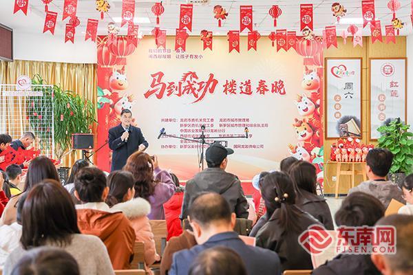 东南网龙岩2月9日讯(通讯员 高秀珍 方晨颖)在马年春节即将到来之际,2月8日上午,一场以“马到成功”为主题的楼道“春晚”在新罗区西陂街道华莲社区新时代文明实践站温情启幕。近百名居民欢聚一堂,以自编自演的节目、邻里守望的温情,共赴这场充满烟火气的新春之约。