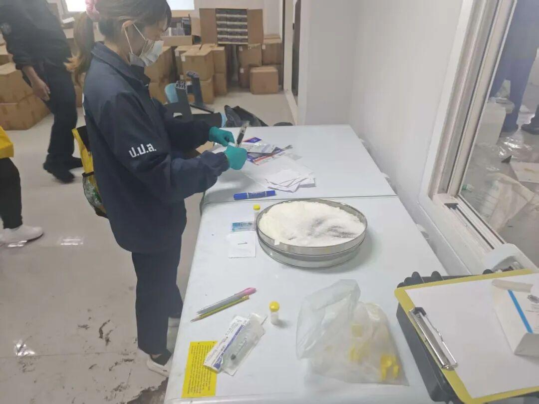2024年5月,山东省禁毒部门工作中发现,多名制毒嫌疑人购买制毒原料并活跃于中国、泰国、越南等地,涉嫌非法制造依托咪酯。为严厉打击该跨国制毒团伙,公安部禁毒局指导山东省禁毒部门全力开展案件侦办工作,并与泰国、越南禁毒部门开展执法合作。根据中方提供的情报线索,泰国、越南两国禁毒部门迅速锁定嫌疑人行踪和制毒窝点后,公安部禁毒局即率中方专案组赴泰国开展工作。4月2日,三国执法人员经综合研判和协商,同步开展收网行动,山东、河南、湖南、广东、甘肃等省公安机关组织警力,协同作战,成功破获该案。