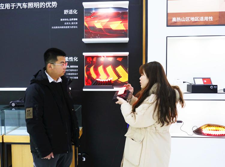 在固安翌光科技有限公司产品展厅,工作人员正在介绍产品的应用场景。肖靖凯摄