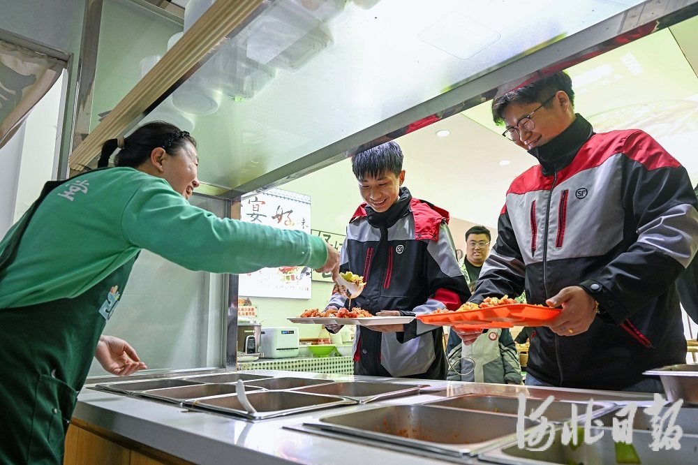 “几步路就到,单子来了随时能出发。更贴心的是,食堂还把午饭供应时间延长到下午两点半,还有线上订餐服务,就算错过饭点儿也能吃上热乎饭。”何洪奎笑着说。