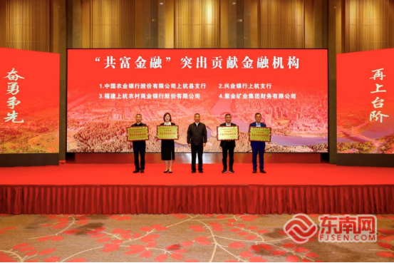 东南网龙岩3月13日讯近日,上杭县委、县政府召开2026年企业家新春座谈会,会上对过去一年为地方经济发展作出突出贡献的金融机构与企业进行了表彰。兴业银行上杭支行凭借其在服务实体经济、推动共同富裕方面的卓越表现,连续两年荣获中共上杭县委、上杭县人民政府颁发的年度“共富金融”突出贡献金融机构称号。