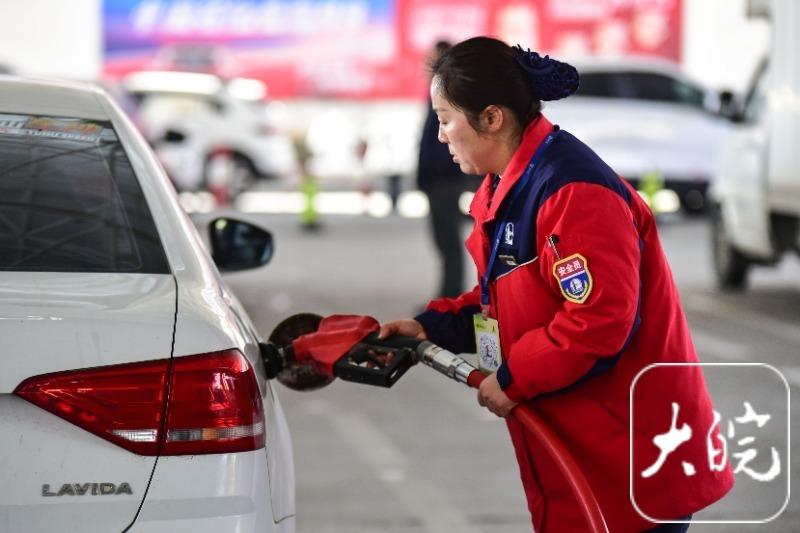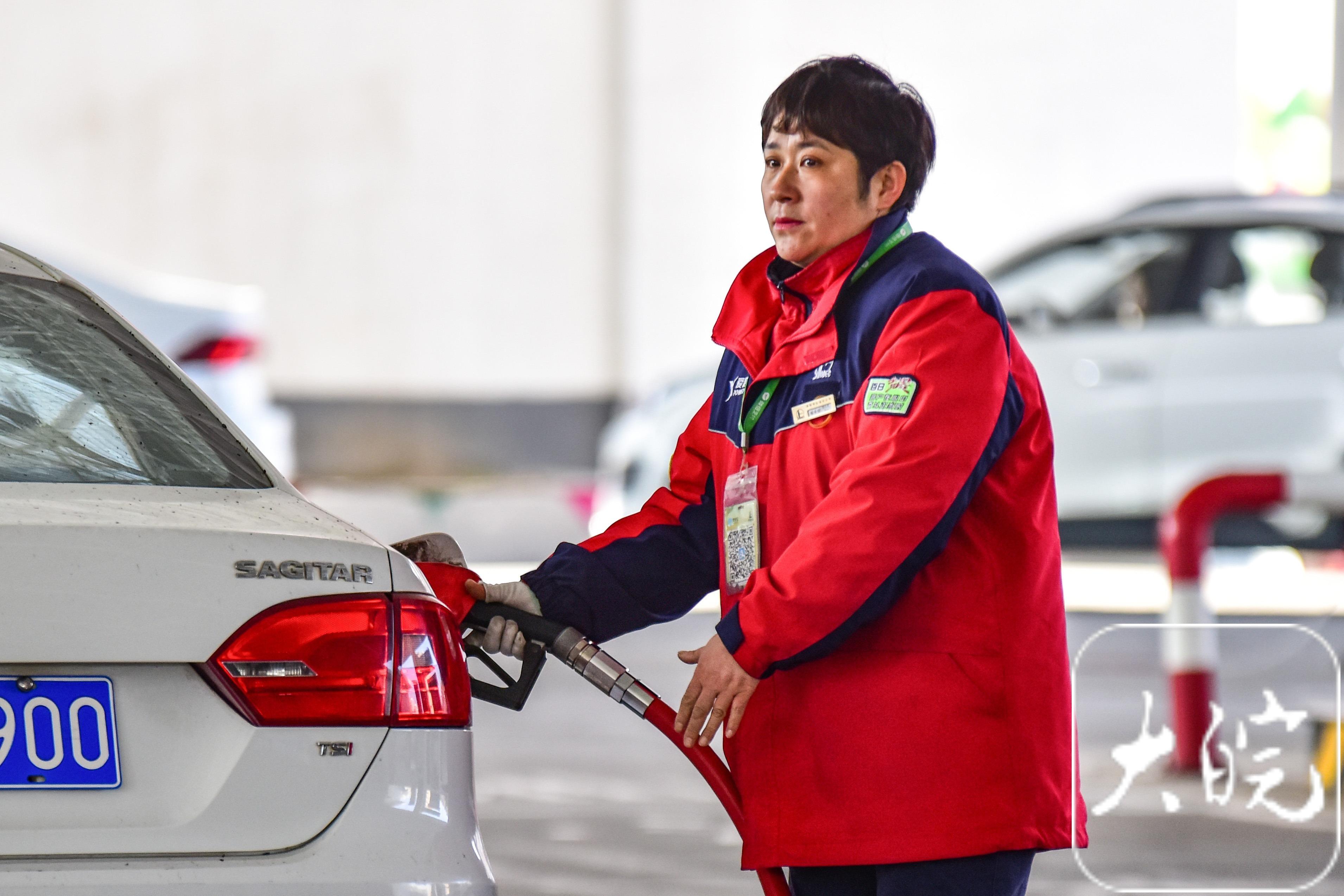 大皖新闻讯 2月3日,在中石化阜阳市城西加油站,工作人员在给汽车加油。当日24时起,国内汽柴油价格上涨。