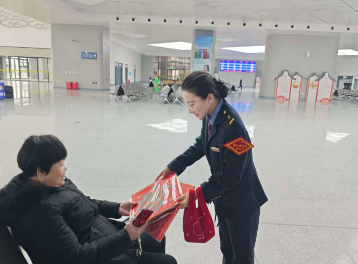她一边安抚后面的旅客,一边帮大叔核验车票,搀扶到重点候车区。记下车次后,到点准时送他上车,跟列车长反复叮嘱。大叔拉着她的手要表扬,她摇摇头:“您一路平安就好。”