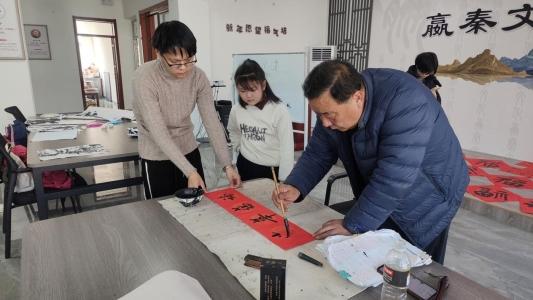 为让活动更具新春氛围,书画协会老师现场挥毫泼墨,书写春联和福字。笔墨流转间,一幅幅笔力遒劲、寓意吉祥的春联,一个个饱满圆润、喜气洋洋的福字相继诞生,红底黑字相映成趣,满是新春的喜庆与美好。孩子们围在一旁认真观摩,不时发出阵阵赞叹,主动向老师请教书写技巧,老年书法爱好者也积极参与其中,与孩子们相互交流、切磋技艺,现场呈现出“老少同乐、墨香传情”的温馨画面。