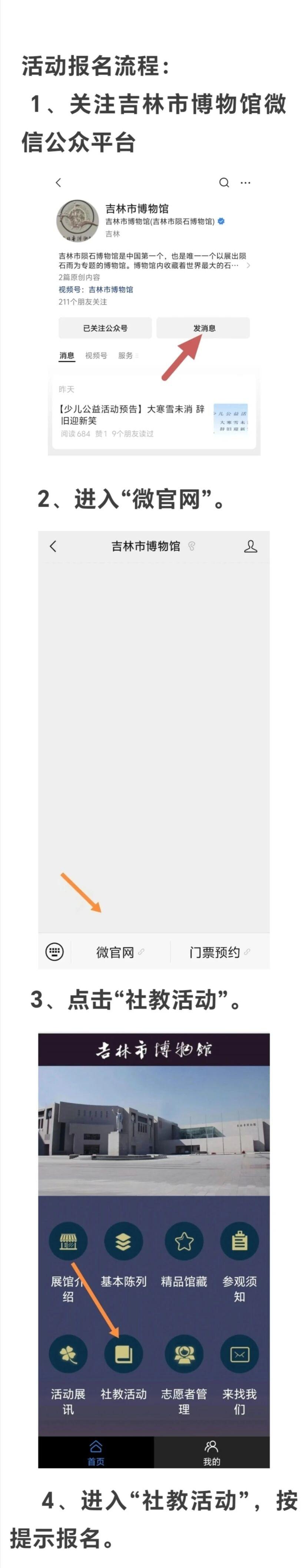 报名方式:报名将于2026年3月6日(周五)10点前发布预告后,在微信吉林省博物院教育群(六个群)中使用微信小程序"小萝卜"接龙报名,课程名额和年龄根据每期公布信息为准,报满为止。未加入教育群的家长,请添加专属客服吉小博老师(微信号:jlsbwy88917353)后将您拉进群内。