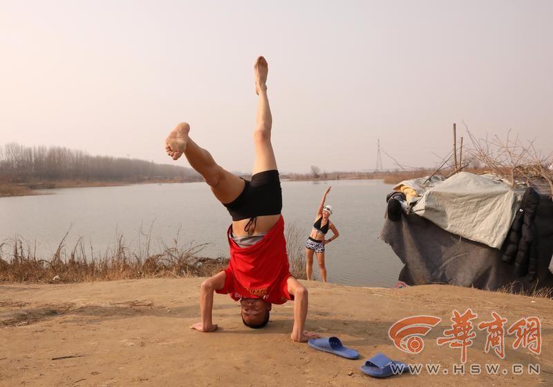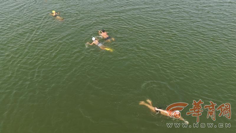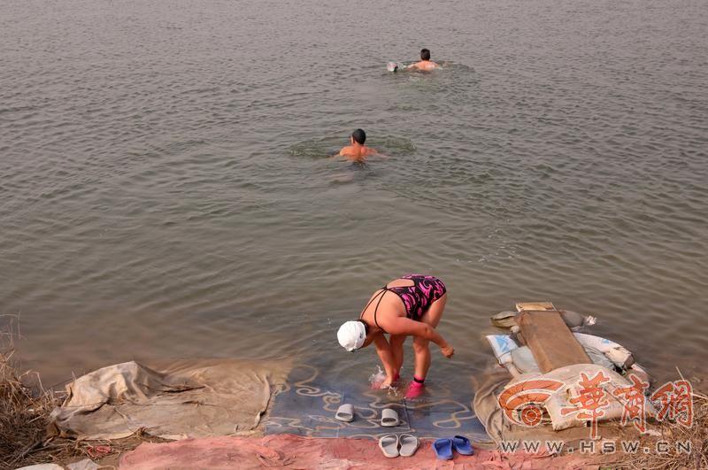 岸边,“拼命三郎”杨建武、“十年梦”安亚、“丁丁一”丁文丽、“大秦岭”李曦等七八名“泳士”,有的忙着换泳衣,有的做着扩胸、踢腿等热身动作。