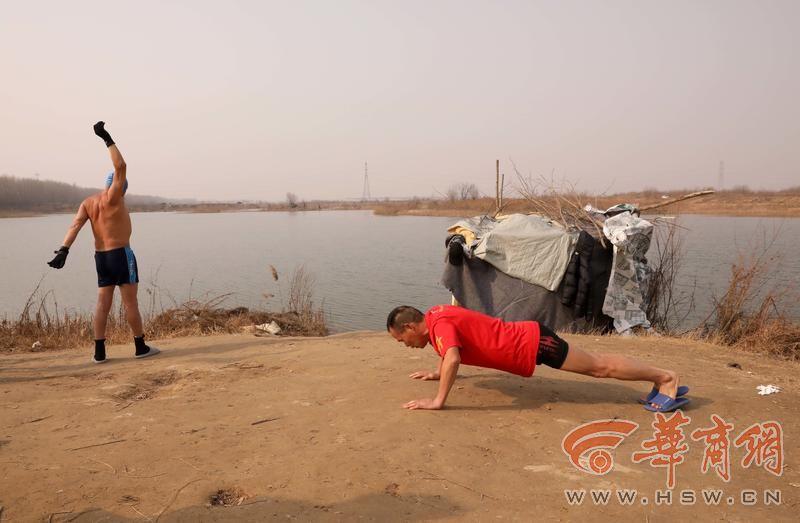 收拾完毕后,大家一起在渭河边绕着菜地慢跑回暖,这也是冬泳后既定科目,让身体做一下恢复性训练。